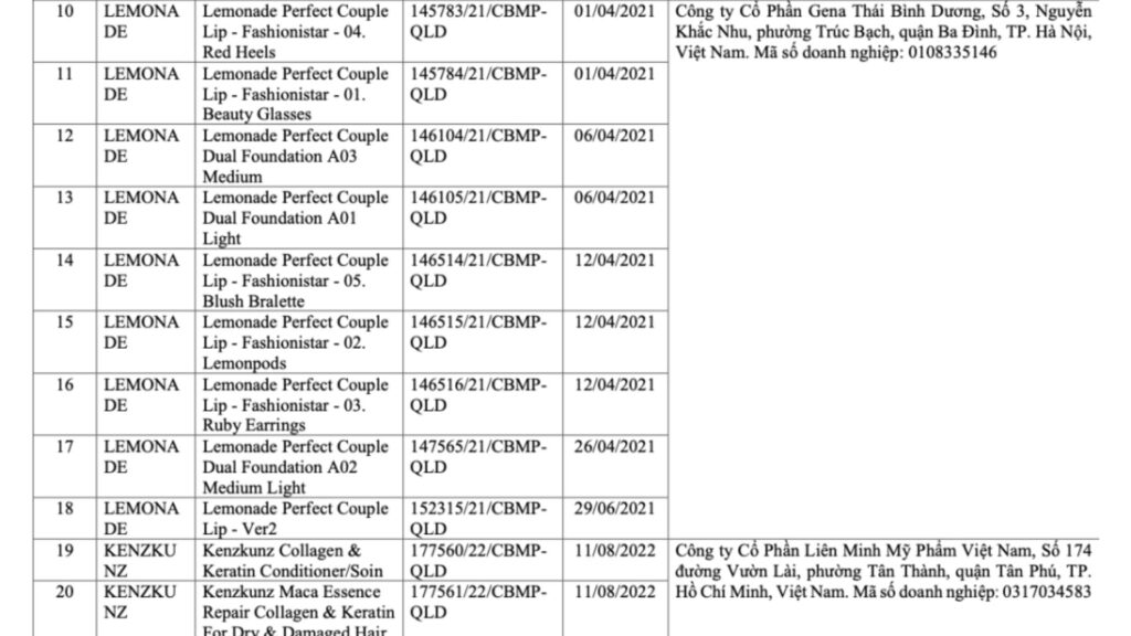 Lemonade cho biết việc các sản phẩm này xuất hiện trong danh sách mỹ phẩm bị thu hồi 2026 là do doanh nghiệp chưa thực hiện thủ tục thu hồi số tiếp nhận Phiếu công bố đối với những sản phẩm đã ngừng kinh doanh trước đó.