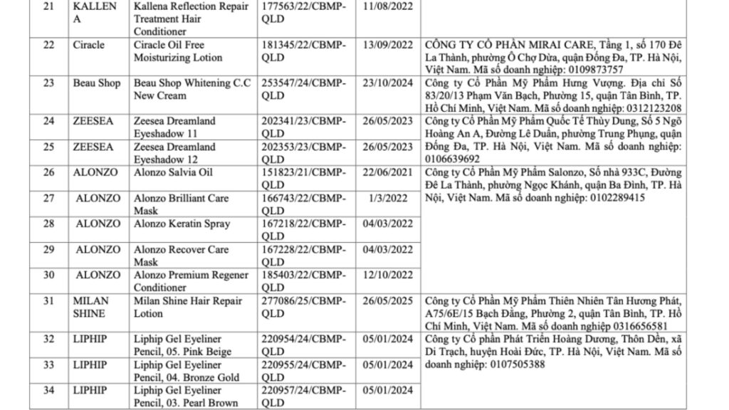 Phần lớn các thông báo từ doanh nghiệp đều tập trung vào ba nội dung chính: nguyên nhân sản phẩm nằm trong danh sách thu hồi, tình trạng lưu hành thực tế của sản phẩm và cam kết tuân thủ các quy định mới về thành phần mỹ phẩm.