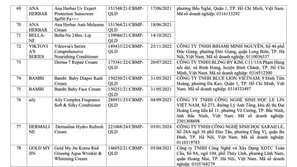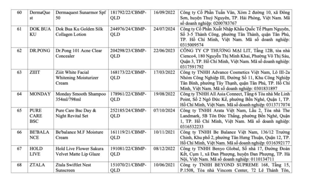 Danh sách mỹ phẩm bị thu hồi 2026 theo công bố của Bộ Y tế